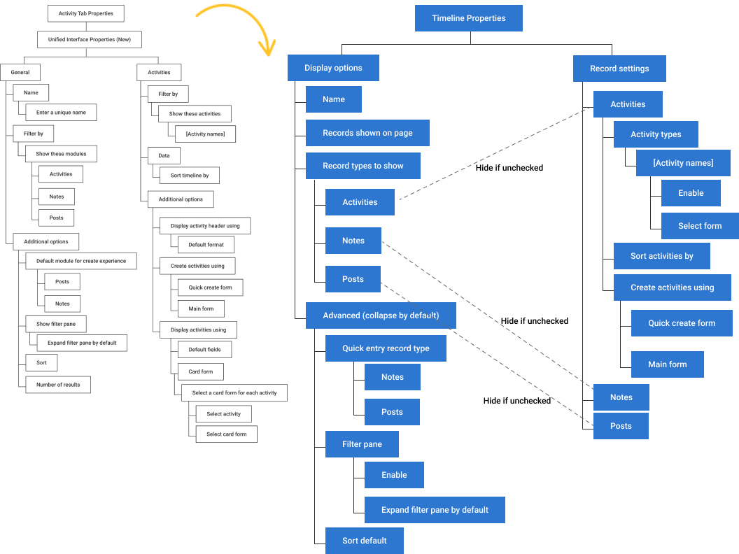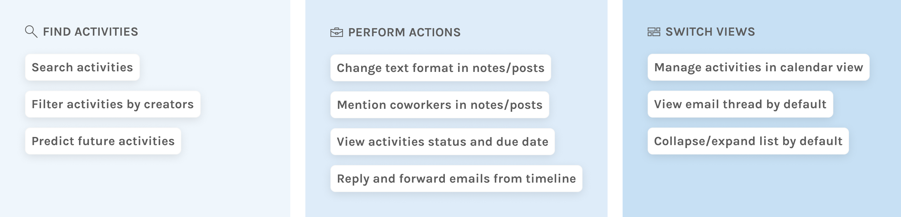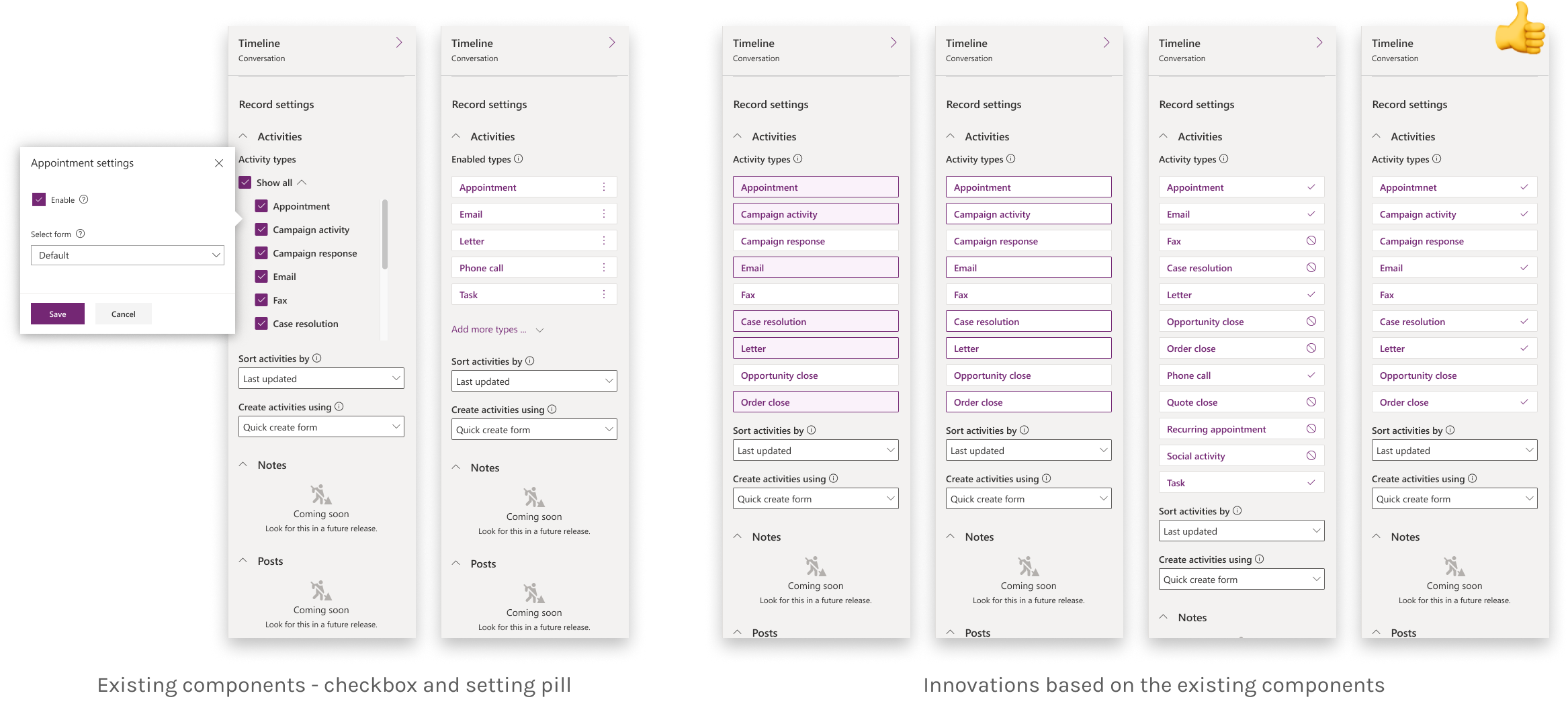 Joining as the first US-based designer, I owned one of the most important features across the Dynamics 365 platform - timeline. Besides Customer Service app, Sales and Marketing apps also use timeline to track customers interactions, major events, to-do items, etc. When I first worked on timeline back in October 2019, the control was problematic, with usability issues and outdated interface.